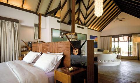 The Coco Residences are a secluded cluster of spacious villas located at the northern tip of the island. Each villa has living room, bedroom, separate dressing area, massive bathroom with marble tub along with indoor and outdoor showers. The décor is luxurious with high ceilings, exposed beams and local art.