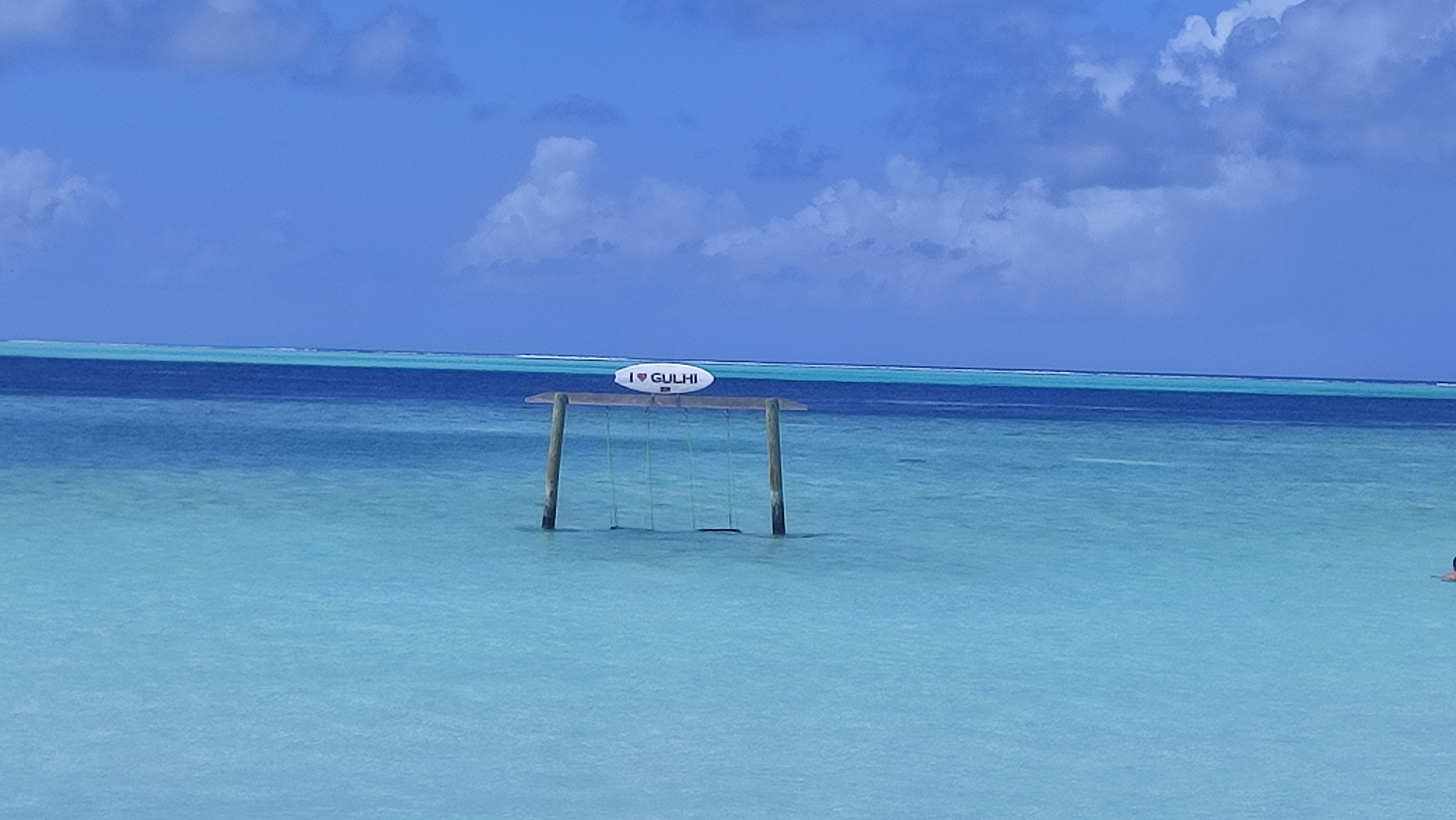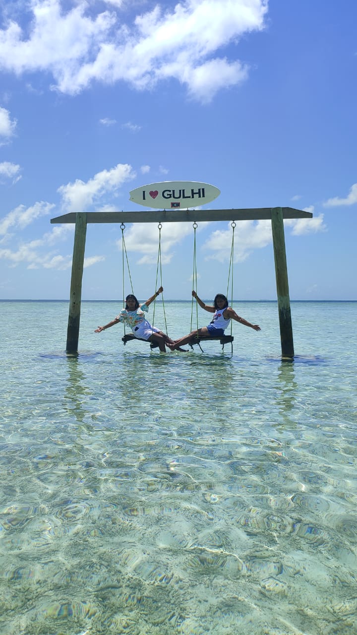 Our hotel person arranged for the private speed boat pick and drop at the cost of $15 per person. Gulhi is one of the best quiet islands in the Maldives. It has one of the best beaches in the Maldives, a bikini beach which is a huge, white sand beach with clear, turquoise water. It is genuinely one of the most stunning beaches I have seen and definitely worth a visit. At the entrance to bikini beach, there are lots of different water sports on offer. Water sports depends on climate. If its sunny then its your day. Gulhi has the one of the best bikini beaches with a cute swing for photos in the middle of it.