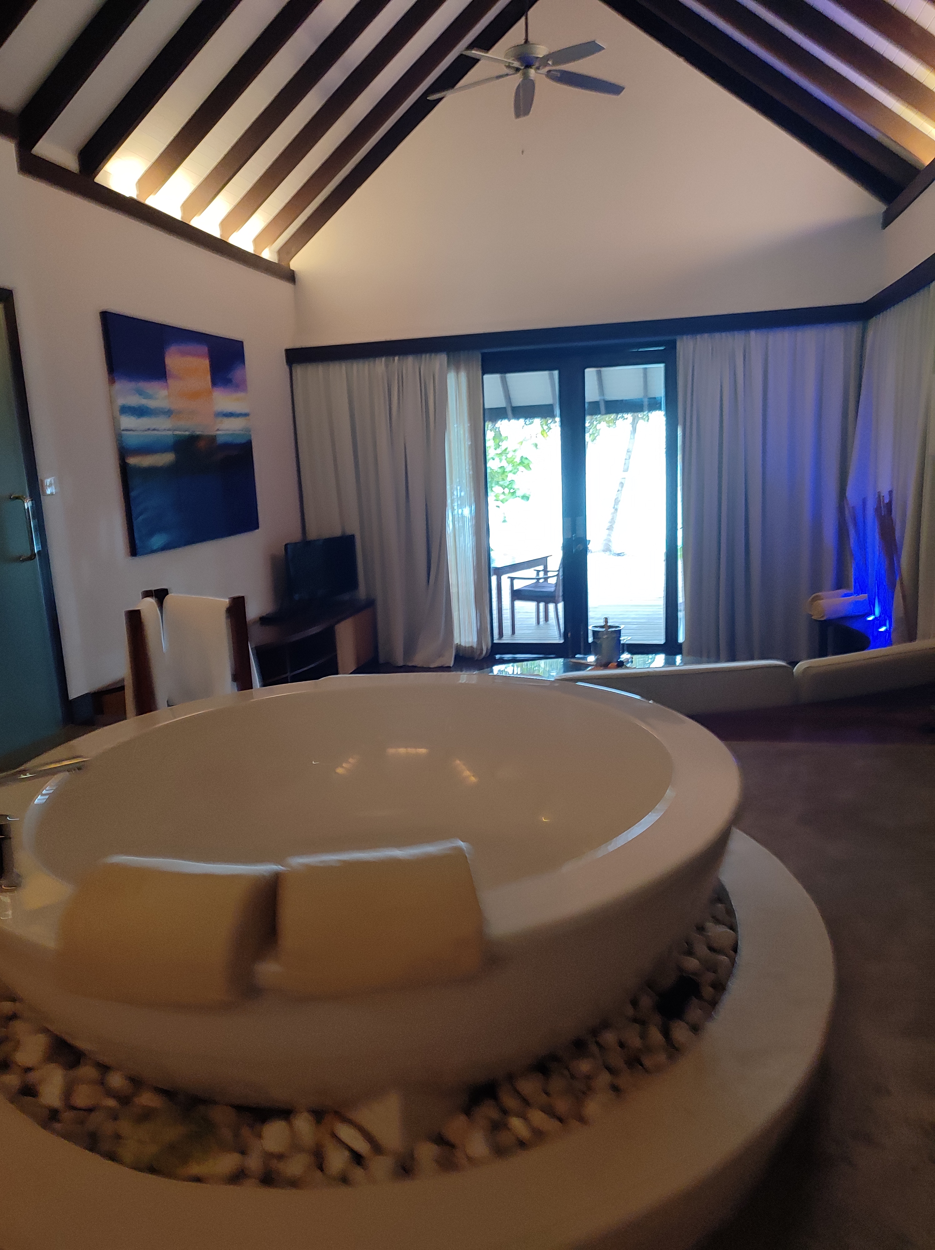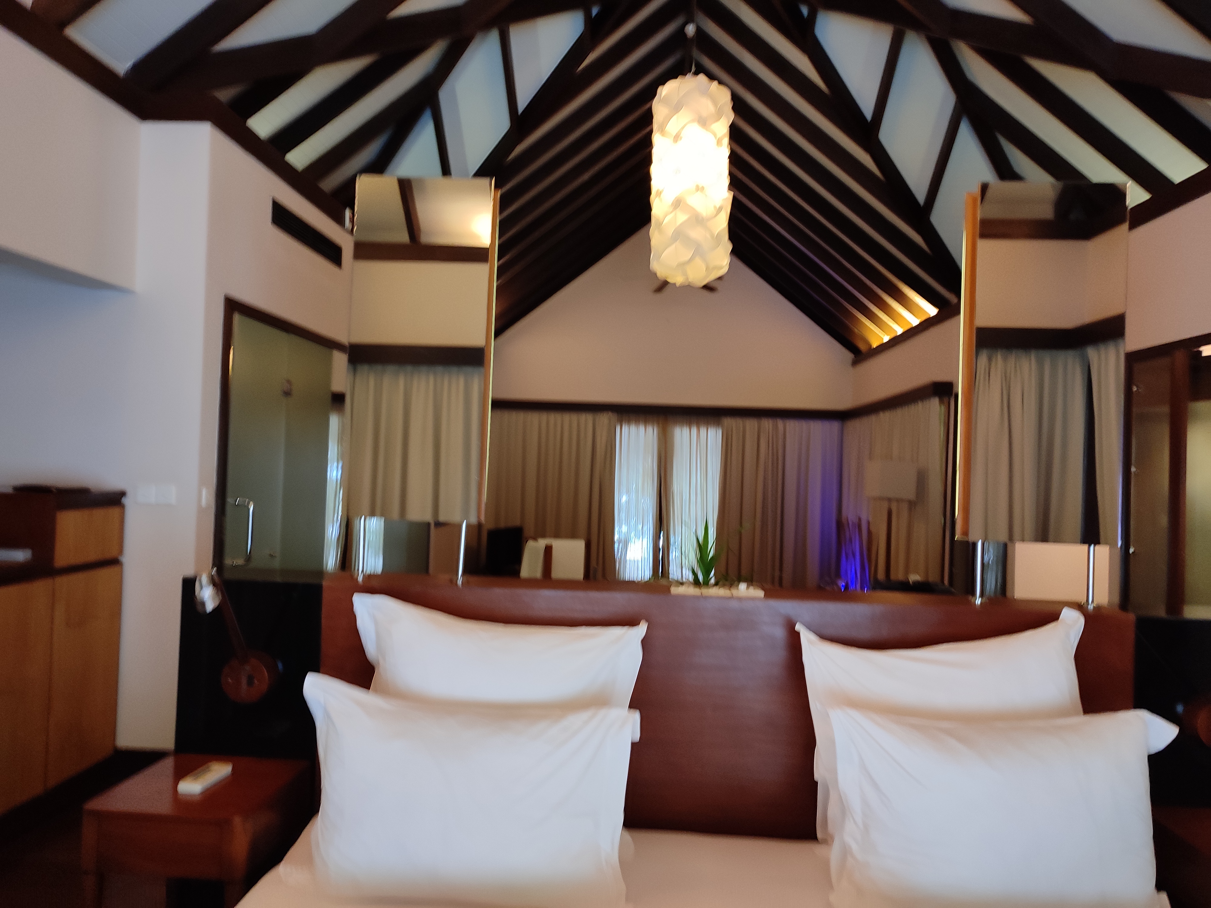We stayed 2 nights in beach villa and 1 night in Coco Residency water villa. We had booked escape water villa, but due to renovation we got upgraded to residency water villa. We were lucky to get that upgrade. We loved both the views.